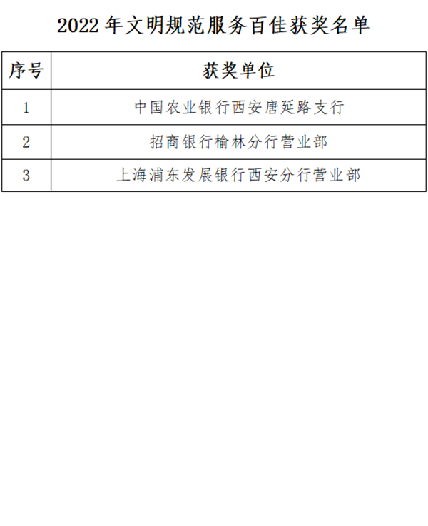 2022年文明规范服务百佳获奖名单