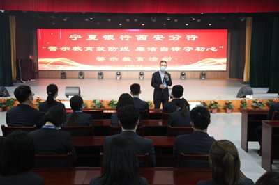为深入贯彻全面从严治党战略方针,扎实推进清廉金融文化建设,根据宁夏银行总、分行《廉洁文化启智润心工程实施方案》要求,结合“年度廉洁警示教育暨廉政警示教育周”活动安排,4月9日,该行党委组织分行领导、风险管理条线、办公室条线及分支机构业务发展科全体61人前往陕西省女子监狱开展“警示教育筑防线 廉洁自律守初心”警示教育活动,让广大干部员工接受了一次形式直观、内容深刻的沉浸教育。