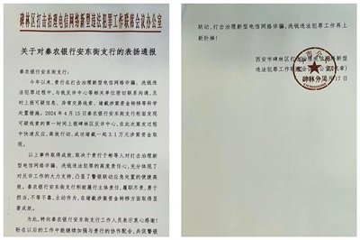4月17日,碑林区反诈中心民警为安东街支行送来表扬通报。对该支行在打击治理电信网络诈骗犯罪工作中积极承担金融行业主体责任,高度配合公安机关警银联动协作等方面给予了充分的肯定。