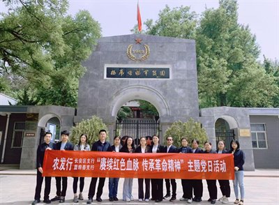 为深入贯彻中央八项规定精神学习教育,进一步强化党员干部的纪律意识和使命担当。近日,农发行西安市长安区支行、蓝田县支行党支部前往杨虎城将军烈士陵园,联合开展了以“赓续红色血脉 传承革命精神”为主题的党日活动。