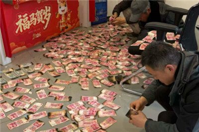 由于纸币炭化严重,稍用力就可能碎裂,工作人员小心翼翼地展开潮湿的残币,逐张分离、摊平、辨认,窗外的天光从正午的明亮渐渐转为黄昏的柔和。