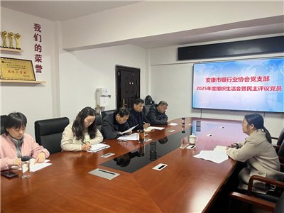 2026年3月6日,安康市银行业协会成功召开了2025年度组织生活会暨民主评议党员。党支部书记张春刚同志主持会议,党支部全体党员参会。安康金融监管分局领导黄梅同志莅临指导。
